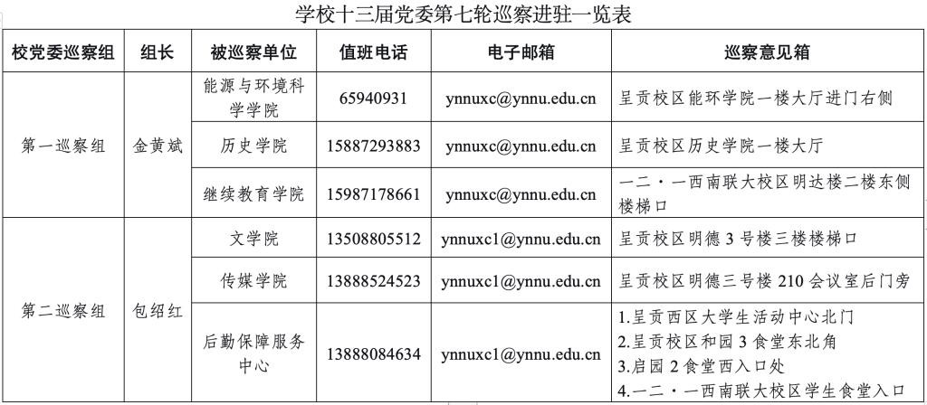 各巡察组将在被巡察单位工作30天左右。巡察期间设值班电话、电子邮箱和巡察意见箱,主要受理反映被巡察单位领导班子及其成员、下一级党组织主要负责人和重点岗位人员问题的来信来电来访,重点是违反政治纪律、组织纪律、廉洁纪律、群众纪律、工作纪律、生活纪律以及中央八项规定精神等方面的问题反映。校党委巡察组受理信访时间截至2025年12月1日。