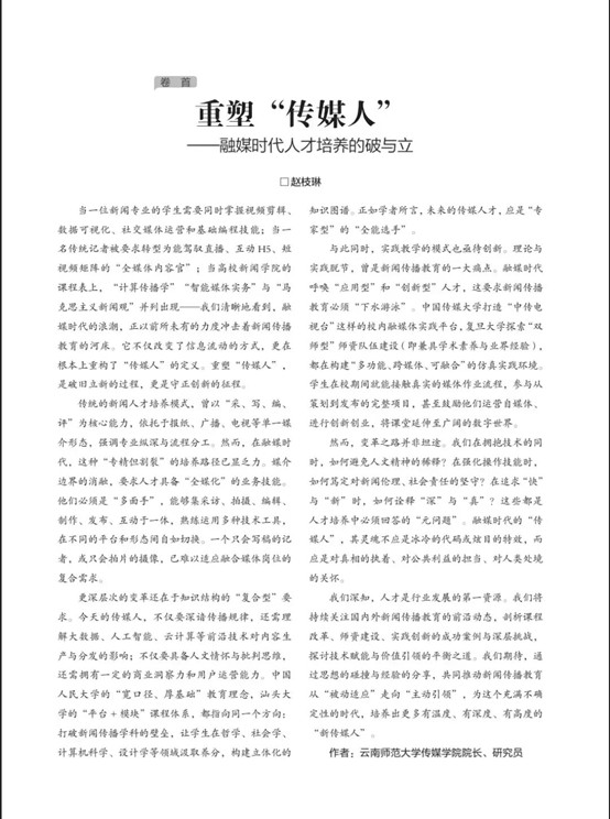 当一位新闻专业的学生需要同时掌握视频剪辑、数据可视化、社交媒体运营和基础编程技能;当一名传统记者被要求转型为能驾驭直播、互动 H5、短视频矩阵的“全媒体内容官”;当高校新闻学院的课程表上,“计算传播学”“智能媒体实务”与“马克思主义新闻观”并列出现——我们清晰地看到,融媒时代的浪潮,正以前所未有的力度冲击着新闻传播教育的河床。它不仅改变了信息流动的方式,更在根本上重构了“传媒人”的定义。重塑“传媒人”,是破旧立新的过程,更是守正创新的征程。