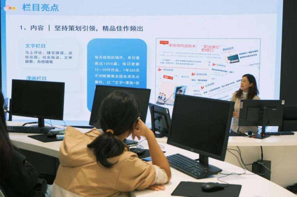 王琳老师作为多次赛事的指导教师,从教学与学生视角指出,学生参赛常面临从“读者”到“评论者”的思维转变难题,表现为复述事实缺深度、情绪化宣泄乏理性,她通过拆解往届获奖范文、分析论证逻辑及追问训练,助力学生挖掘新闻事件深层问题;她同时提到,参赛对学生助益显著,专业上推动跨学科知识整合运用,职业发展中优质评论作品成为求职“敲门砖”,多名学生借此在媒体应聘中脱颖而出,展现独立思考与快速成文能力。